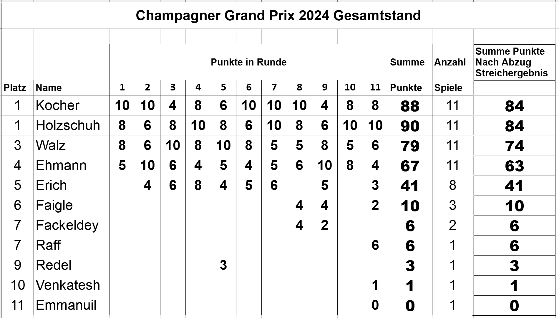 | Bei Punktgleichheit wird der Platz nicht ausgespielt - die punktgleichen Spieler erhalten gleich viele Grand-Prix-Punkte |