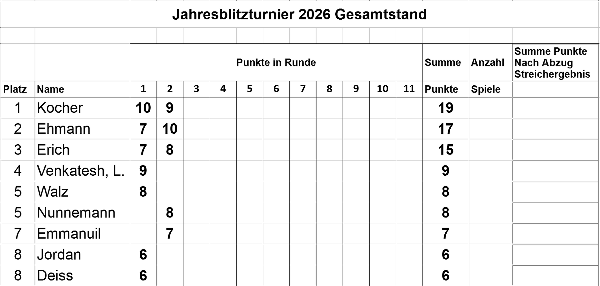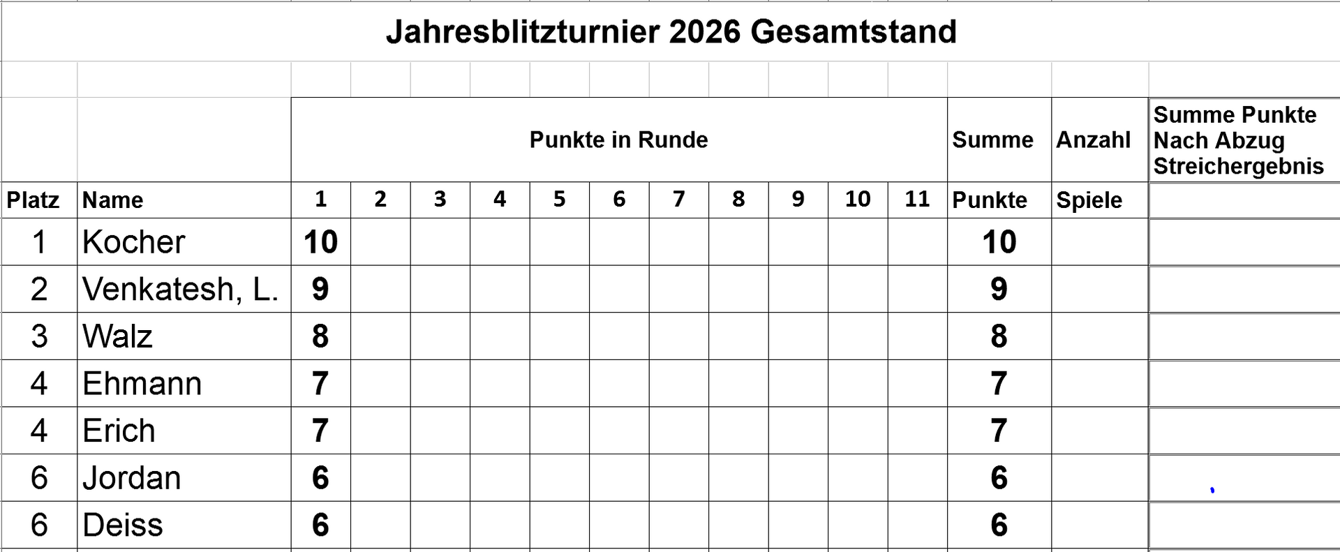 Winnender Jahres-Blitz-Turnier 2026