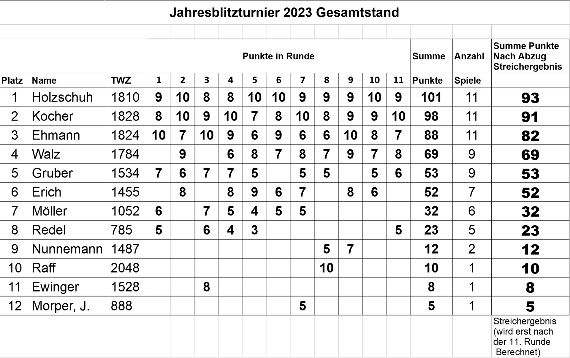 | Die DWZ zu Beginn des Turniers gilt während dem ganzen Jahr; bei Einsteigern während des Jahres wird die aktuelle DWZ verwendet. |